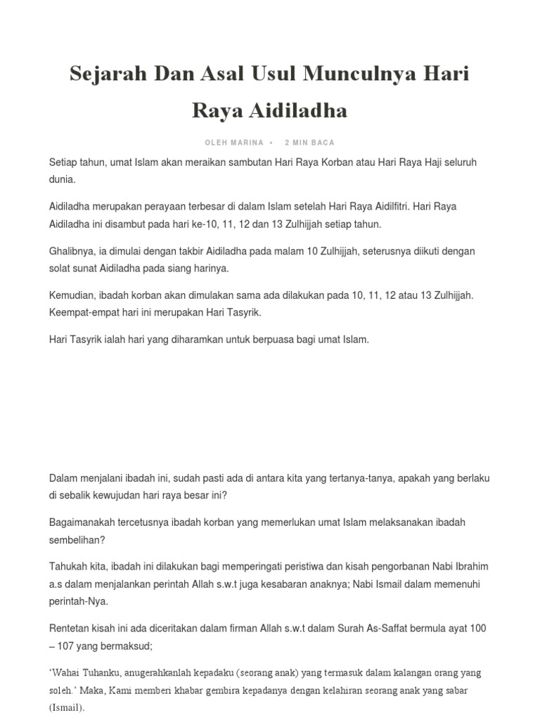 Sejarah Dan Asal Usul Munculnya Hari Raya Aidiladha Pdf